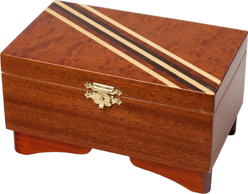 Originál intarzovaná šperkovnice, dno provedení mahagon, víko kořenice mahagon, lak, rozměr 18x11x7cm